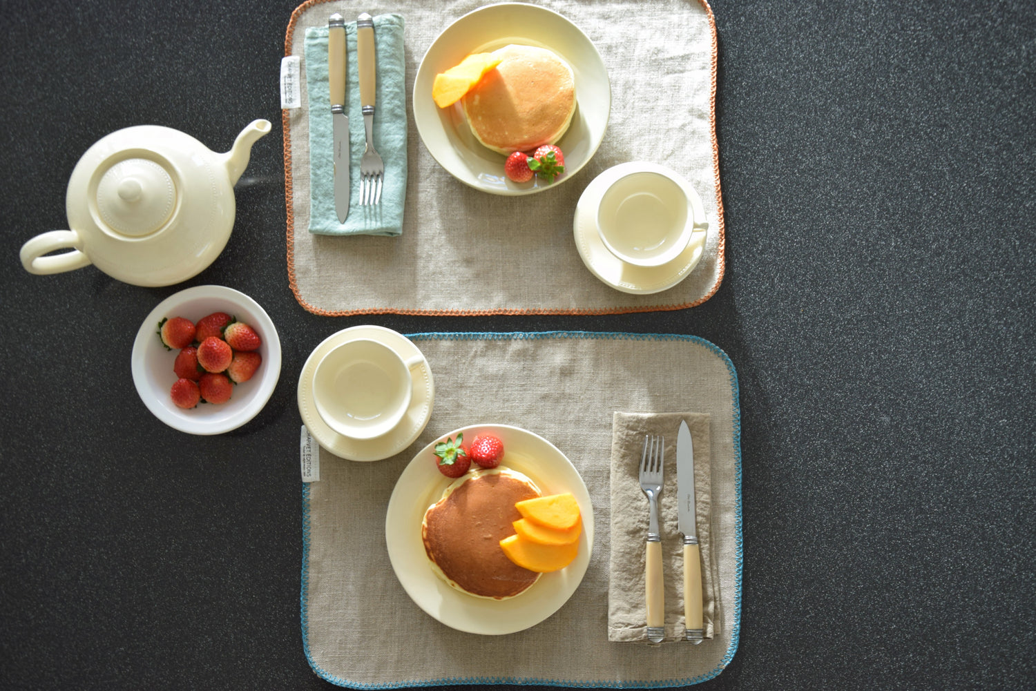 自然な風合いにカラフルなふちどりがアクセントのフレンチリネンのプレースマット。