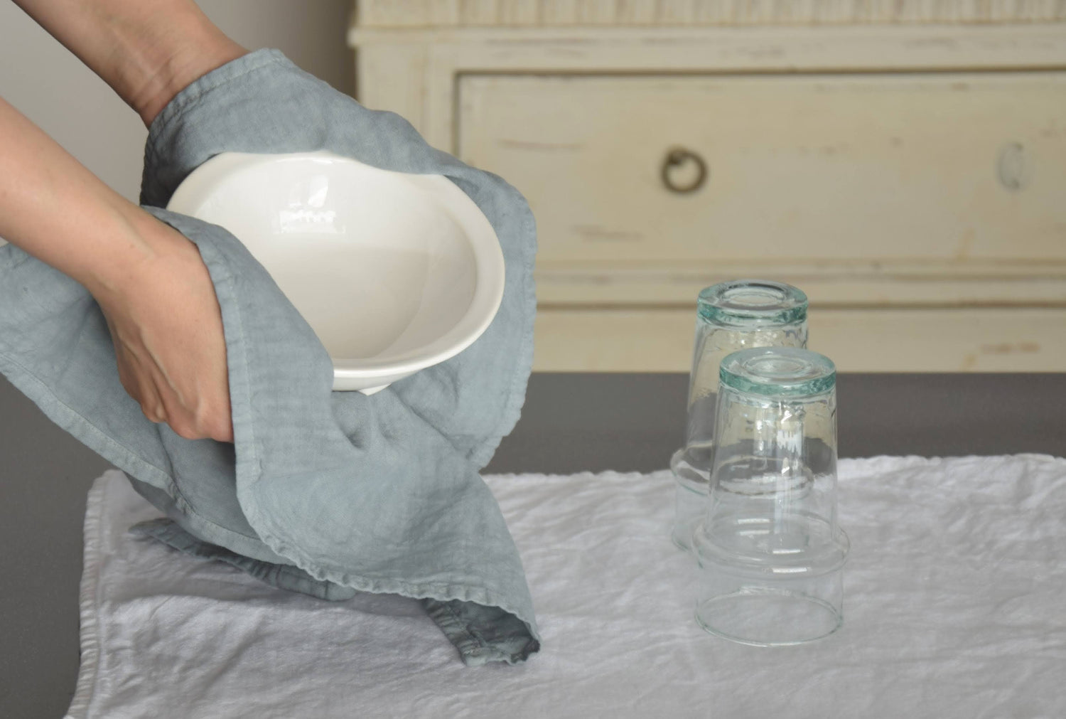 使い込むほどに柔らかくなるナプキン。乾きが早いのも嬉しいところ。風通しを良くしておけば、あっと言う間に乾きます。湿気が多い季節でもキッチンは爽やかな空間に。