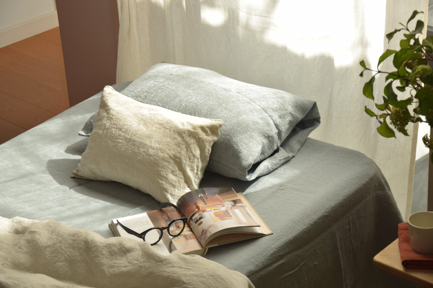 睡眠中の長い時間、顔に接するまくらカバー。朝起きた時に、まるでリネンの草原に包まれて目覚めたかのような気持ち良さ。