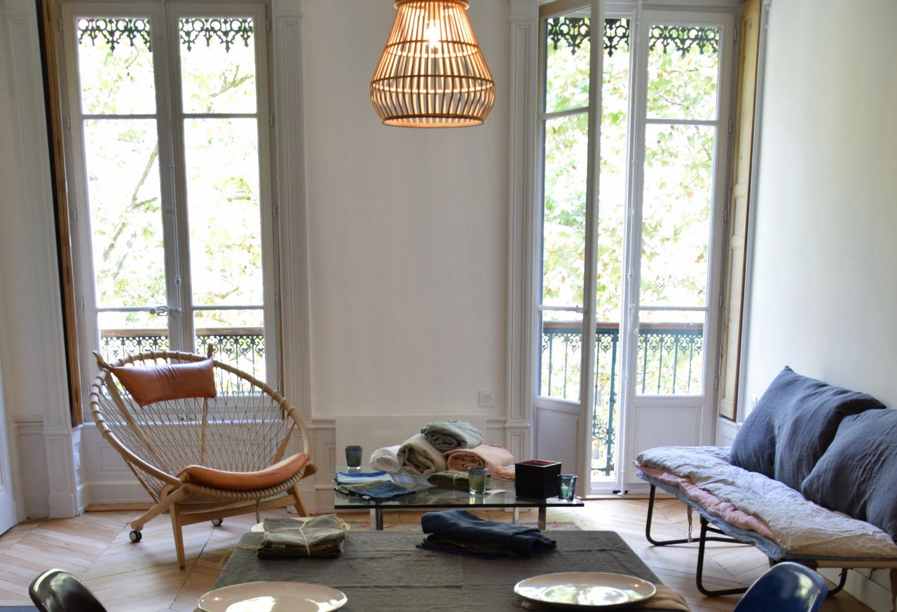 2013年フランスのリネン産業を復活させたいという想いから立ち上げられたブランド。ヴォージュ地方にある織元で伝統的な製法を守りながら、丁寧に織られた生地を使い、北フランスにて仕立て・染色された製品です。こだわりの色彩は、繊細で柔らかい色が魅力。自然界からのインスピレーションにより生み出された色は、やさしいハーモニーを生み出します。