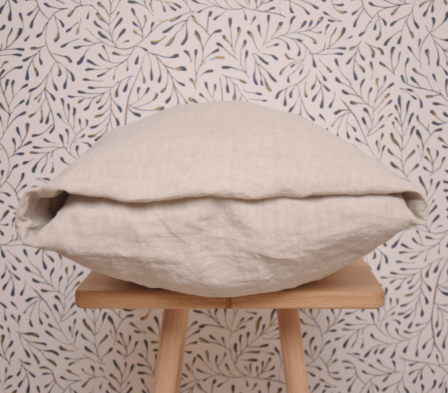 フレンチリネン100%のピロケースです。ウォッシュドリネン特有のくしゅくしゅとした自然の風合い。